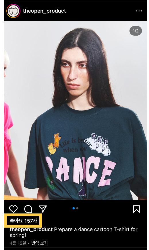 위 사진의 좋아요 수에 주목해주세요.