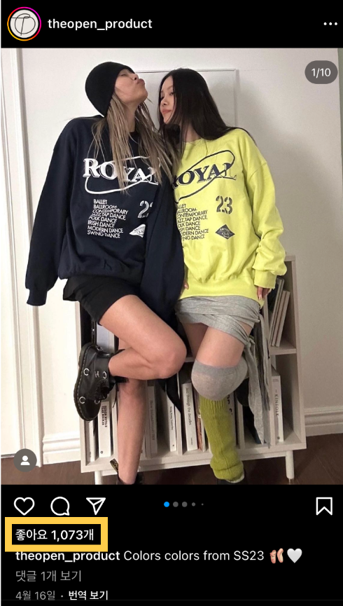 하루 간격으로 올라간 피드의 좋아요 수가 10배, 20배 차이나는 것을 보실 수 있습니다.