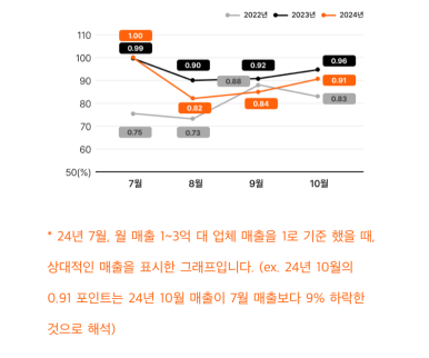 즉, 중,소형 쇼핑몰들은 최고 성수기인 가을 시즌에 상품을 제대로 못 팔고 있다는 뜻입니다.