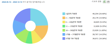 경쟁이 심화된 만큼, 1일 재방문 비율이 평균20~30%로 줄어들긴 했습니다만,