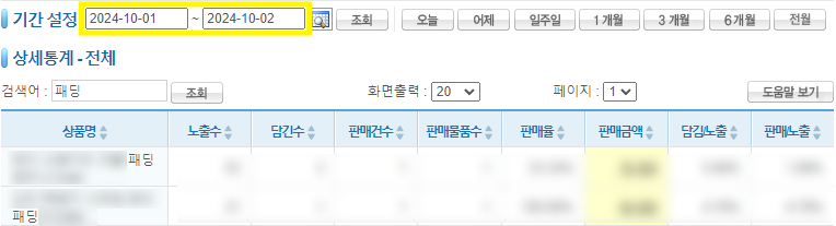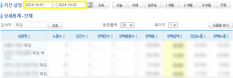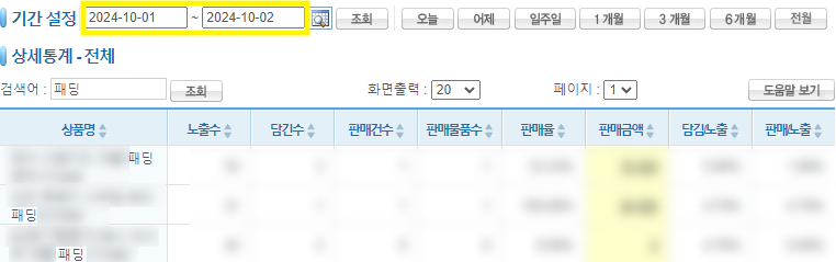 [쇼만마 파트너 쇼핑몰-패딩 판매 데이터]