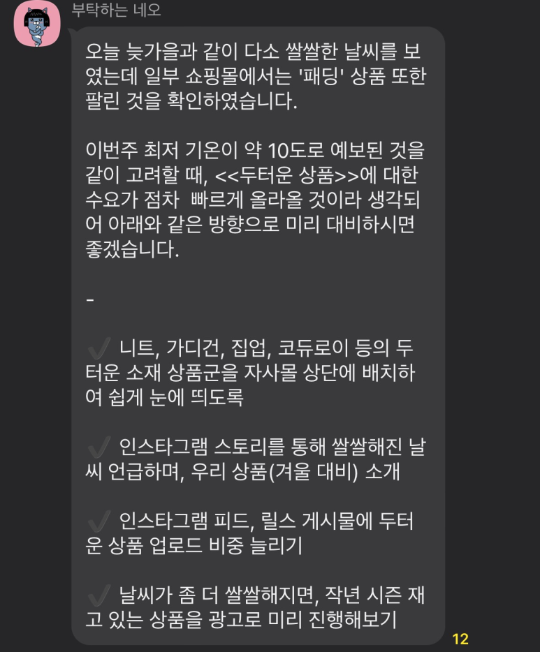 (물론 매일 3번씩 성과보고를 드리면서 날씨와