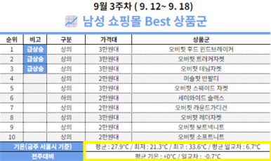 (9월엔 아무리 더워도 정말 싸지 않다면 반팔을 팔긴 어렵습니다.)