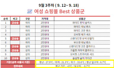 날씨와 비교하여 어떤 상품이 잘 팔리는지,