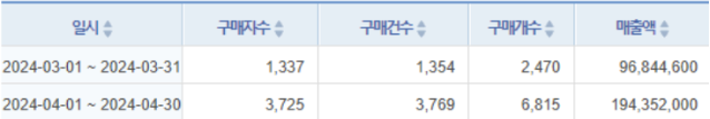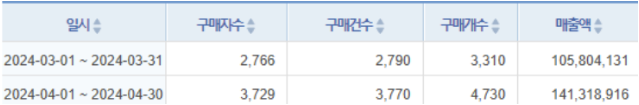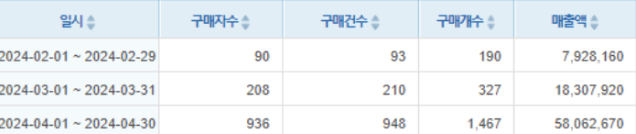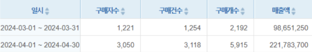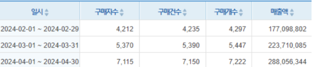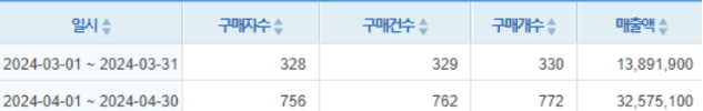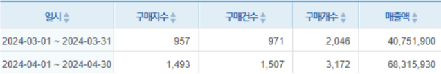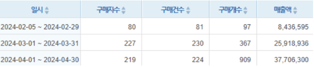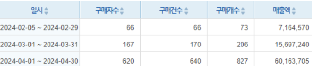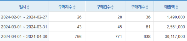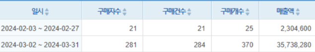 구매 1, 2건으로도 주 최고 매출이 바뀔테니까요.