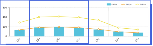 매출이 월~수요일에 몰리는 이유를 말씀드리겠습니다.