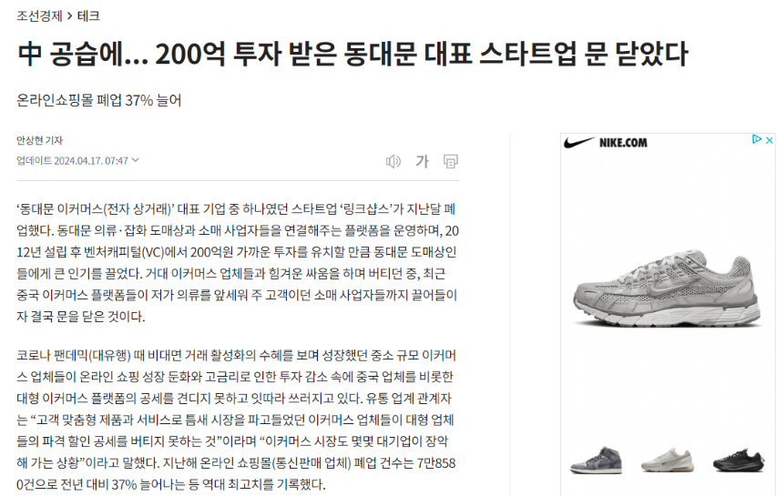 온라인 쇼핑몰 폐업 건수가 작년 대비 37%가 늘었다는 위 기사를 읽고 깜짝 놀랐습니다.
