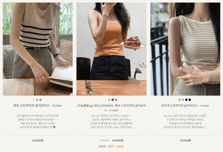 [출처: 슬로우앤드 / 스트라이프 슬리브리스 검색]