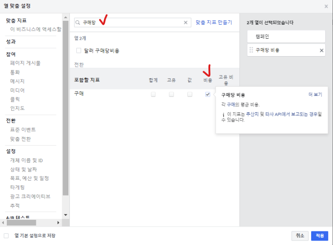 딱 2가지, 전환율과 구매당비용만 볼겁니다.