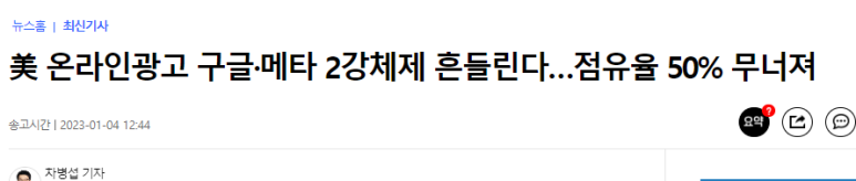 - 메타, 광고 시장 점유율 꾸준히 하향세