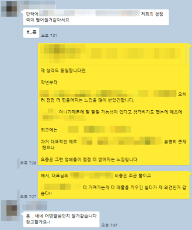 "아니요, 매출 나오려면 이렇게 해야하는데 대표님께서는 이 방향을 원치 않으십니다"