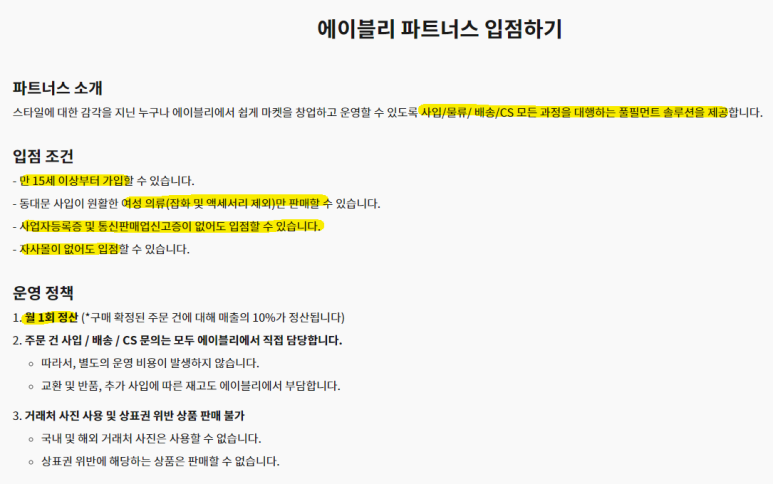 에이블리 입점 방법, 파트너스/셀러스 전격 비교