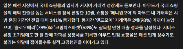 애니원모어, 리리앤코, 프렌치오브, 슬로우베리 등 국내 인기 쇼핑몰 일본 시장 내 성공적 안착...아무드 상품 수 35만 개 달해