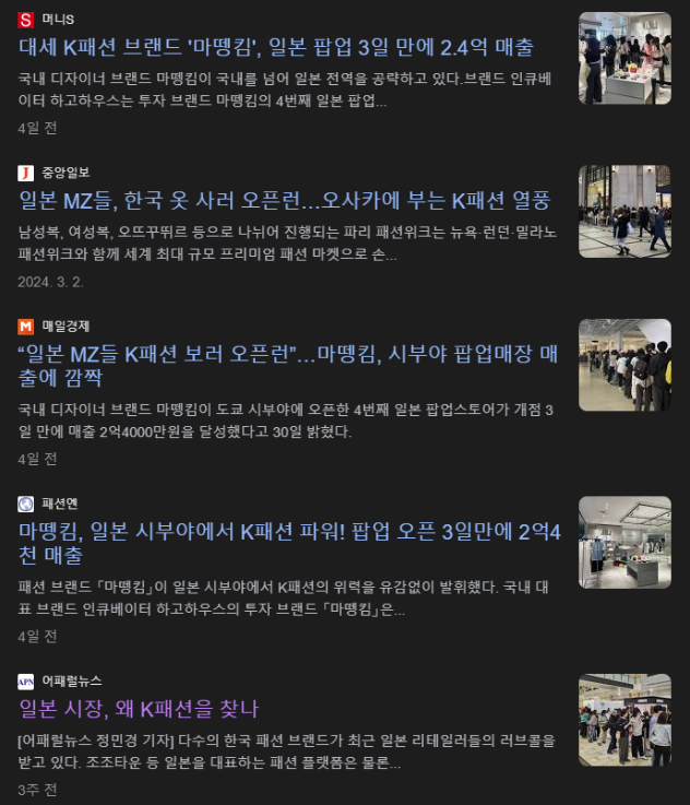 네, 일본 시장은 K 패션을 바라고, 그걸 이미 알고 있는