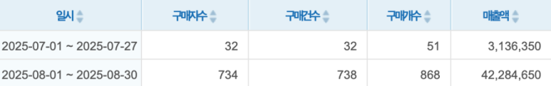 연 매출 30억~50억 구간(월 매출 3~5억)에서는 대부분 쇼핑몰의 판매 능력은 다 비슷합니다.