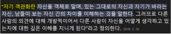 내가 생각하는 장점과 남이 생각하는 장점이 어떻게 다른지 등...