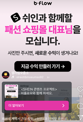쉬인을 통해 '사진/영상'만 제공하고 판매 수익의 일부를 정산받는 '중국 진출'입니다.
