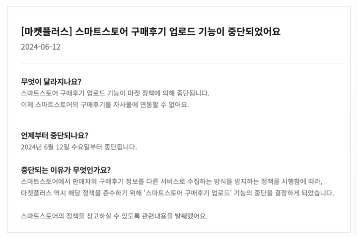스마트스토어 구매 후기 연동이 불가능하게 변경 되었습니다.