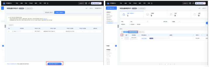 전체 상품 체크 후, '선택한 상품의' '판매정보' '일괄변경' 클릭