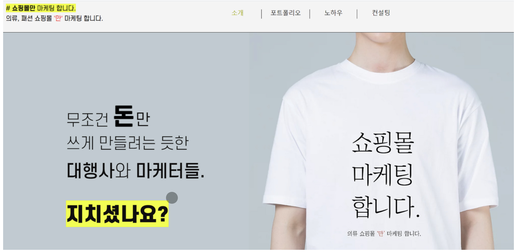의류 쇼핑몰'만' 광고하는 마케팅 에이전시, '쇼핑몰만마케팅합니다' 입니다.