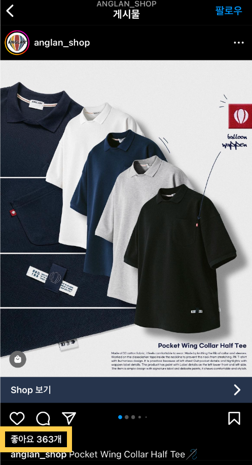 위 사진의 좋아요 수에 주목해주세요.