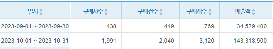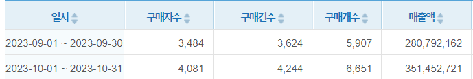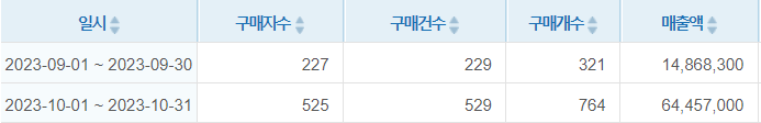 10월 기준 작년과 올해를 비교한 사진입니다.