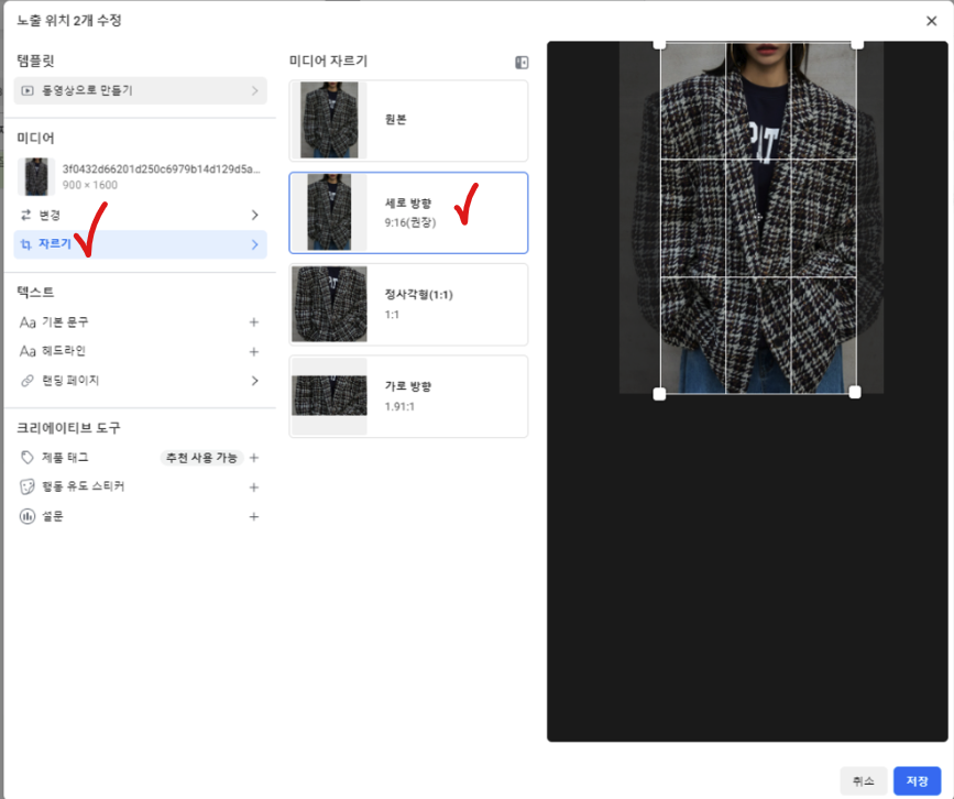 메타 광고 관리자 내에서도 사진 크기를 조절할 수 있습니다.