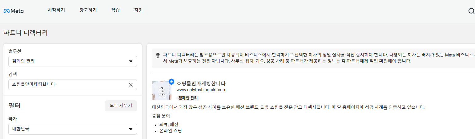 META BUSINESS PARTNER(MBP)는 아래 메타 파트너 디렉터리에서 확인이 가능합니다.