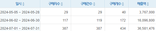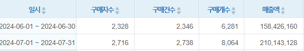 7,8월이 비수기인 점을 감안하고 봐주시기 바랍니다.