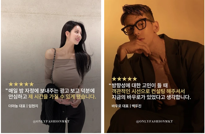 매 달 200개가 넘는 동대문 패션 쇼핑몰의 광고 로아스(ROAS)를 책임지고 있는 "쇼핑몰만마케팅합니다" 대표 서승재입니다. 달 마다 새로운 매출 성장 사례를 수십 개씩 증명해내는, 명실상부 업계