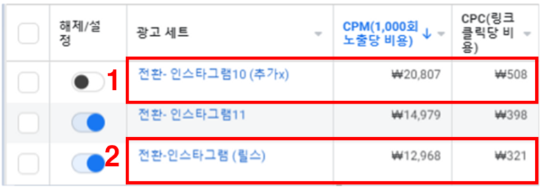 *CPM과 CPC가 뭔지 모르시더라도 릴스 광고에 찍힌 금액이 더 적다는 걸 알 수 있으실 겁니다.