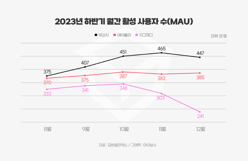 작년 11월을 기점으로 비등비등하던 지그재그, 에이블리의