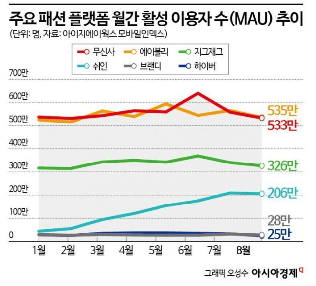 패션 브랜드는 무신사, 여성 쇼핑몰은 에이블리.