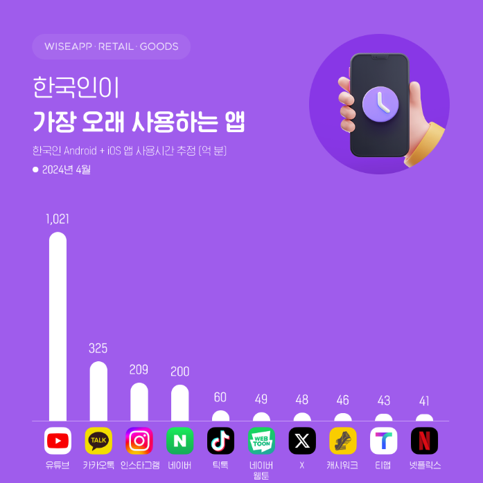 사람들은 유튜브를 인스타에 5개 가까이 사용한다고 합니다.