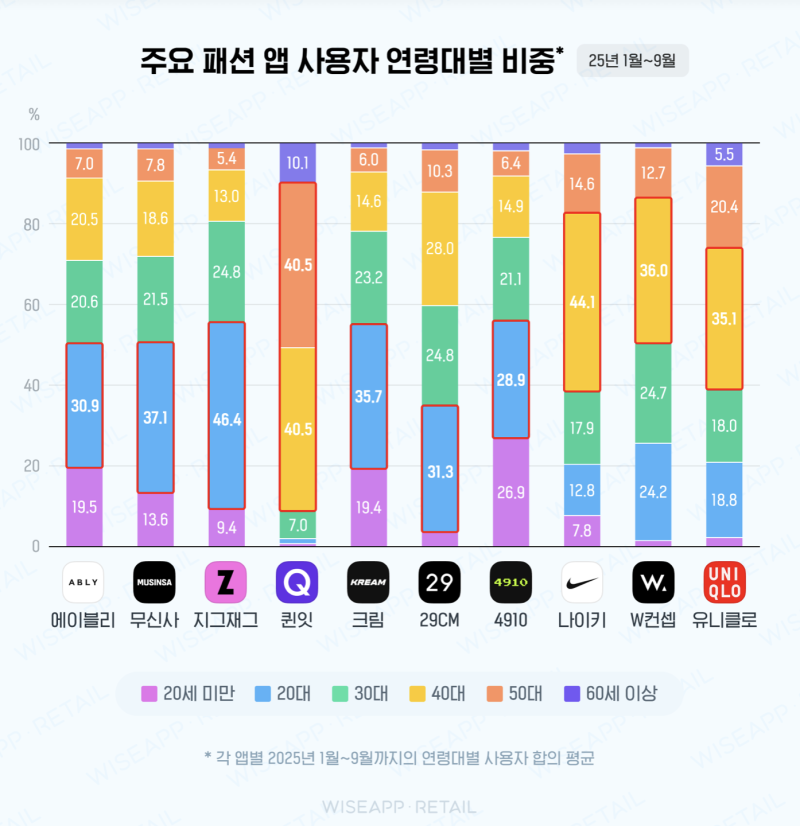 퀸잇의 경우 4~50대 사용자 비중이 지나치게 높습니다.