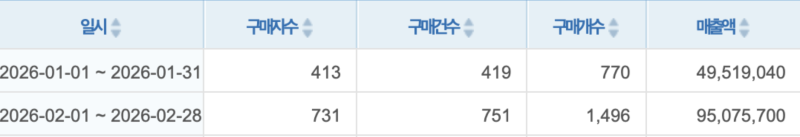 저희 실력이 의심되신다면, 아래 1월 ~ 2월 기준 매출이 오른 업체들의 포트폴리오를 확인해보십시오.