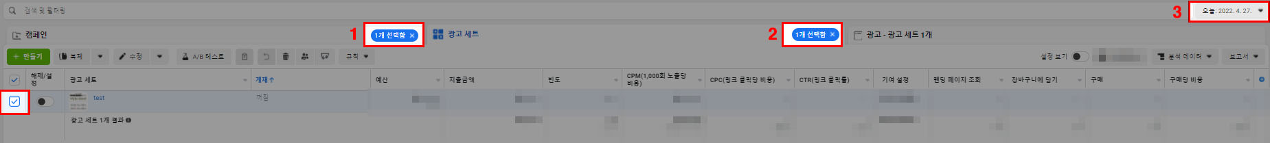 내가 삭제한 광고가 있는 캠페인과 세트를 클릭합니다.