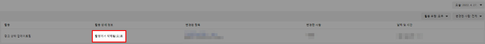 (간혹 세트 내 모든 광고를 삭제하신 대표님들이 등장하시곤 합니다 ㅎㅎ..)