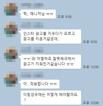 내가 삭제했던 광고의 내역이 남아있습니다.