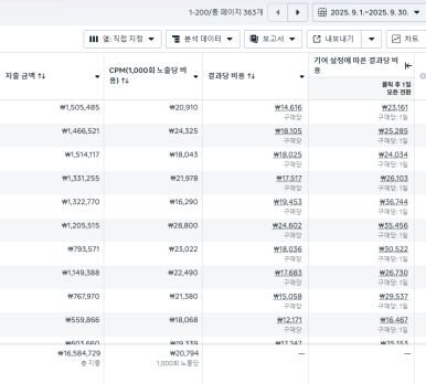 일단 아래 메타 광고 스크린샷에서 '결과당 비용' 부분을 봐주세요.