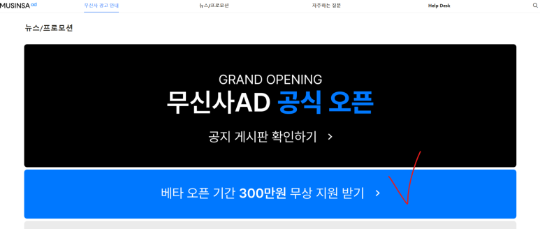 베타테스트 기간에 무신사가 지원해주는 광고비 300만원은