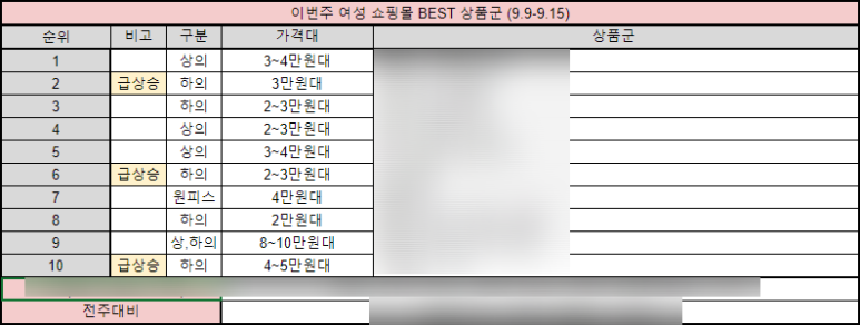 "쇼핑몰만마케팅합니다"에서 매 주 리포트로 받아보시는 것도 방법이 될 수 있겠네요 :)