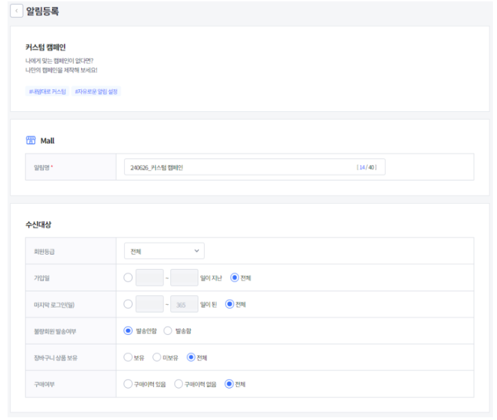 6번째 '커스텀 캠페인'만 설명드리겠습니다.