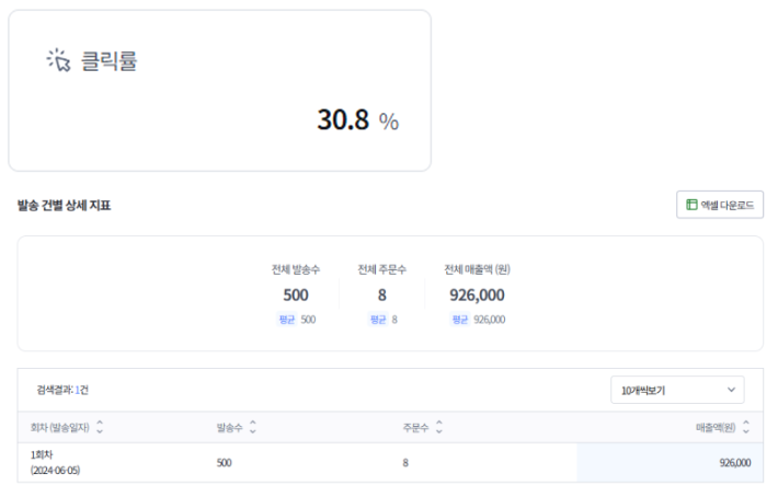 카카오 친구톡 캠페인을 테스트한 결과를 보여드리겠습니다.
