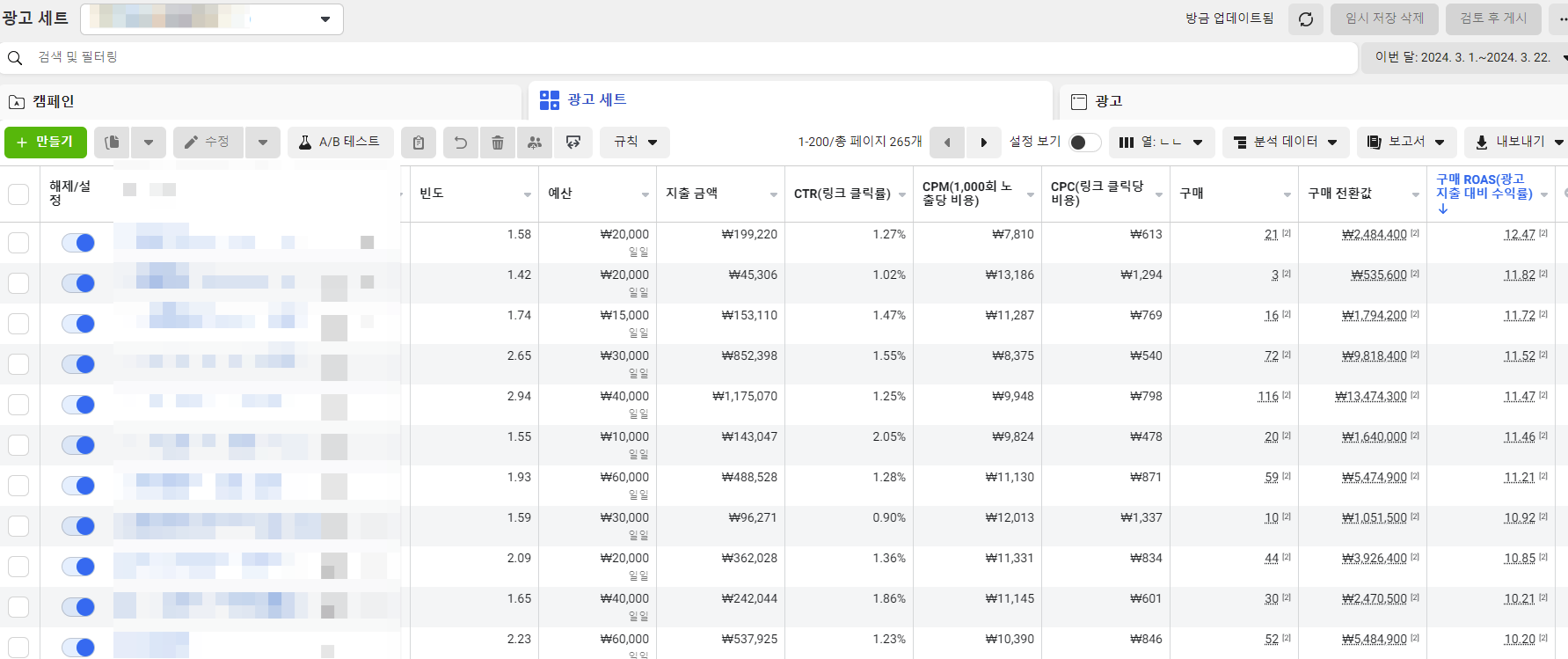 가장 비용을 적게 들이며 매출(ROAS)를 높이는 방법입니다.