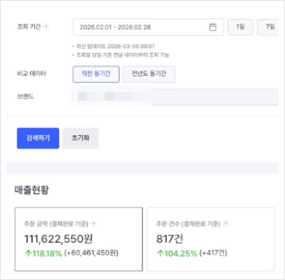 - 자사 브랜드 키워드 비중이 50% 이상인 경우