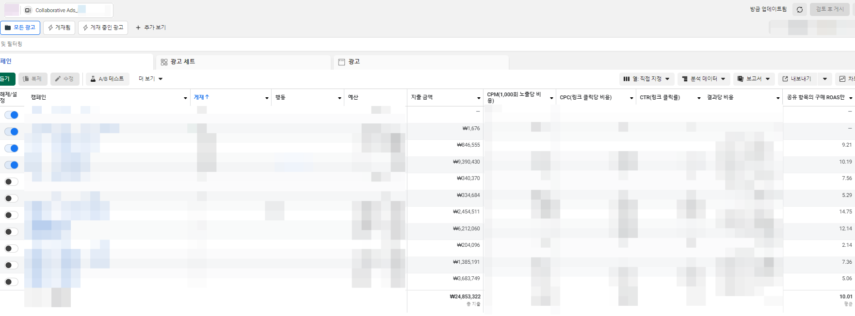광고비를 쓰는 만큼 매출이 1:1로 올랐던 시절만큼은 아니지만,