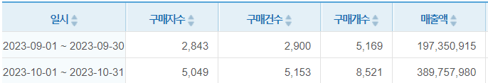 10월 기준 작년과 올해를 비교한 사진입니다.