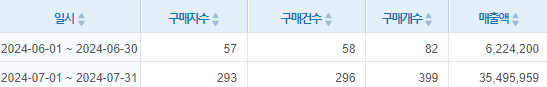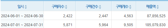 7,8월이 비수기인 점을 감안하고 봐주시기 바랍니다.