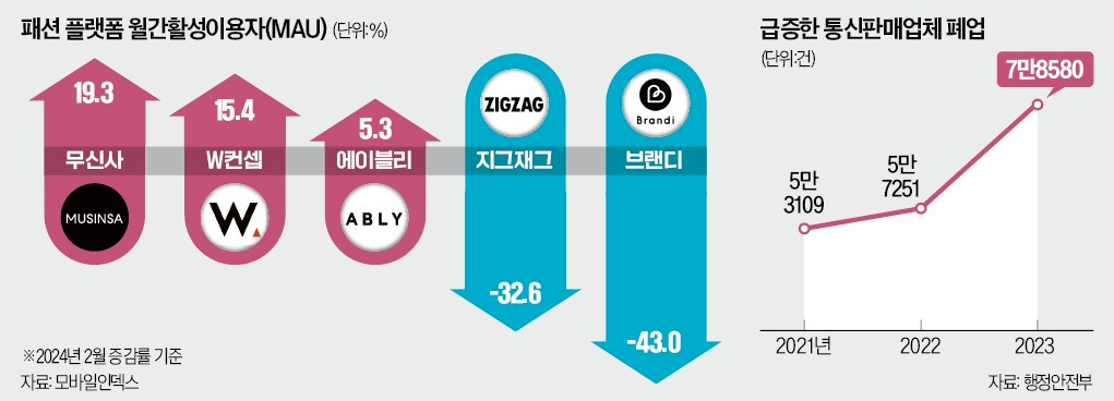24년 2월을 기준으로 '패션 브랜드'가 입점하는 플랫폼인 무신사, W컨셉을 제외하고